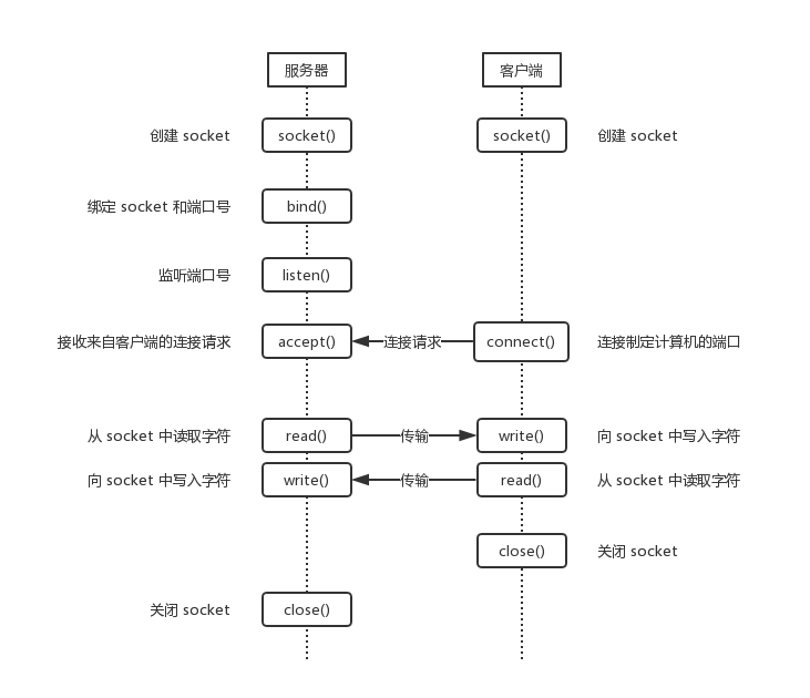 ssize_t write(int fd, const void *buf, size_t count);鉴于该文是侧重于描述 socket 的工作原理,就不再详细描述这些函数了。
